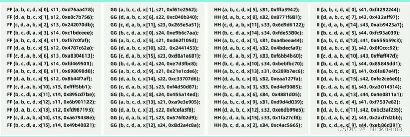 最后得到了一个新的abcd幻数,然后再和之前的(这一轮开始时候没有调用函数)幻数相加
