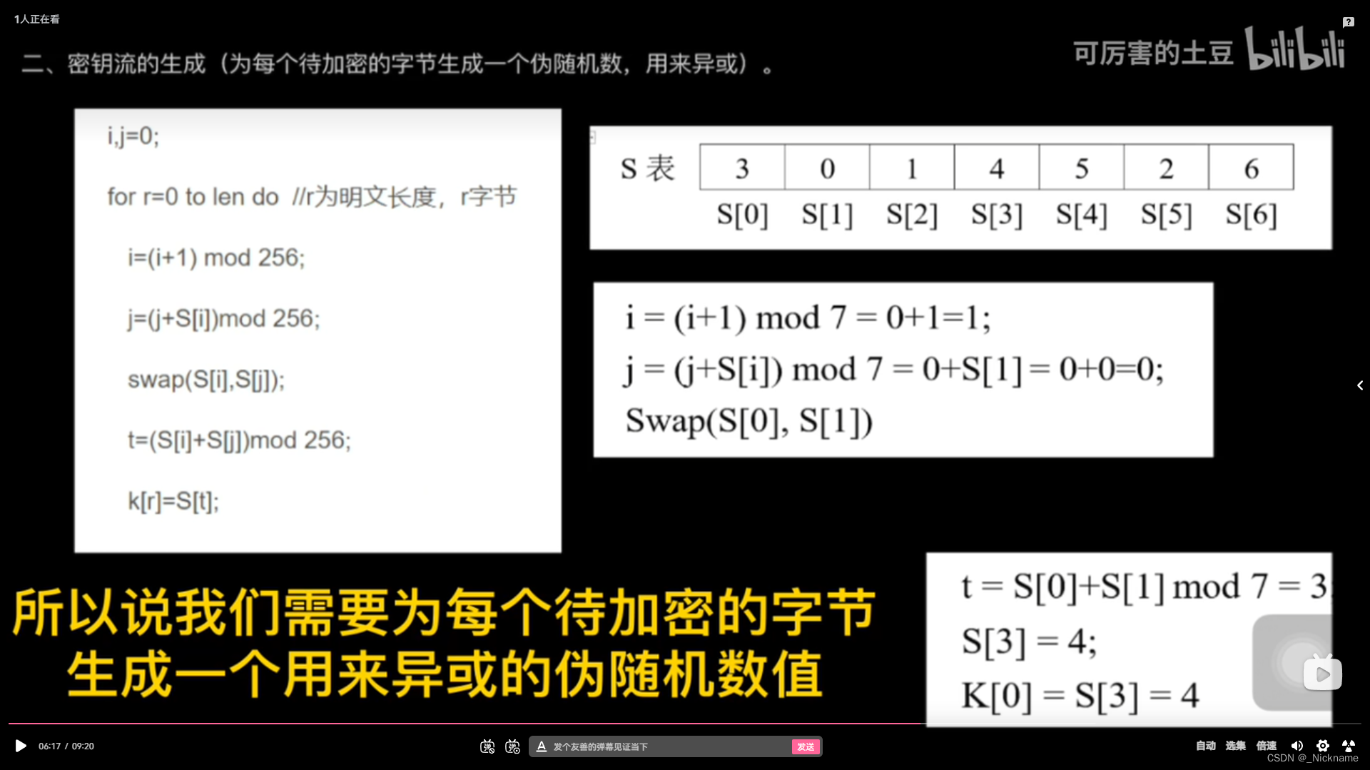 本文介绍了B站UP主关于RC4加密算法的视频内容,详细讲解了流密码中的对称加密过程,包括S表和K表的初始化、密钥使用以及Python代码示例。