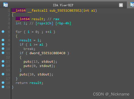 这道题在linux运行下是这样,我首先猜测是和下面这个time有关,判断达到一定次数就会给我flag