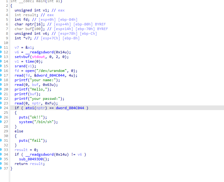 这道题的漏洞是格式化字符串漏洞,详细的可以去看我开头引用的两个博客
