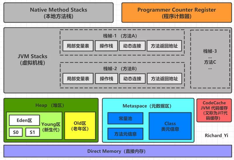 上图描述了当前比较经典的 JVM 内存布局。(堆区画小了 2333,按理来说应该是最大的区域)