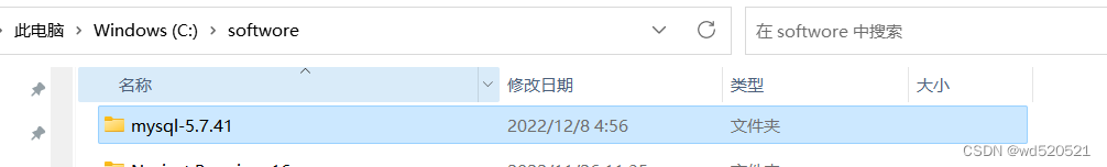 将刚才下载压缩包解压搭配目录C:\software\mysql-5.7.41,(路径大家可以随意切换)。