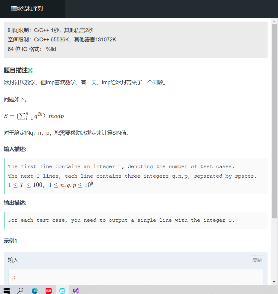 ll sum(ll q, ll m,ll p) {//递归求等比数列/从i=1开始到n的等比数列