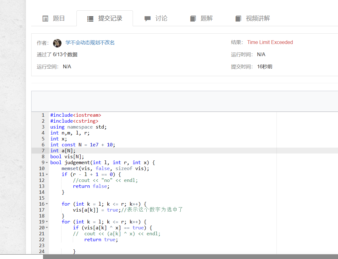 本文提供了一个使用C++实现的暴力解法,该方法能解决一部分问题实例,能在6/13的数据上得到正确结果。程序通过遍历和位运算来判断条件,如果找到符合条件的解则输出并返回true,否则返回false。