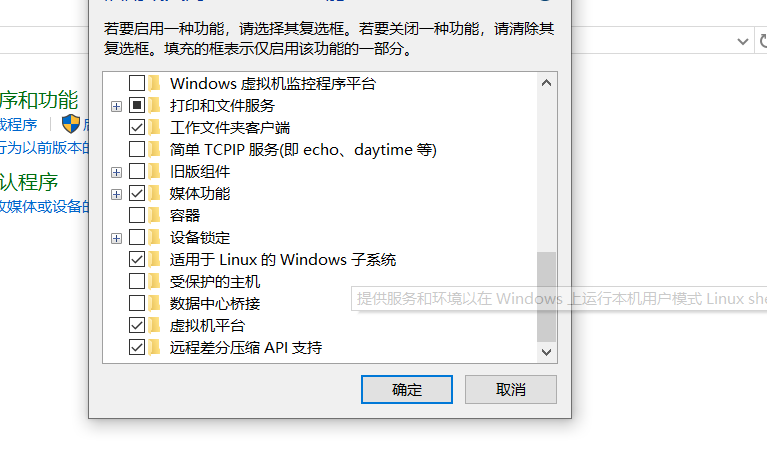适用于 Linux 的 Windows 子系统选中点确定