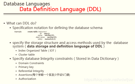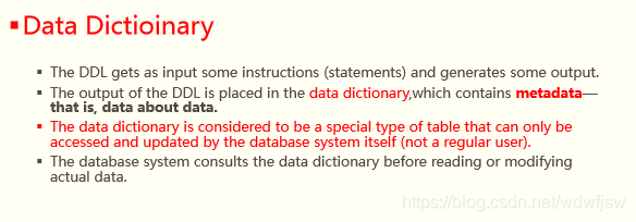 DDL获取一些指令(语句)作为输入,并生成一些输出,DDL的输出放在数据字典中,该字典包含元数据,即有关数据的数据。