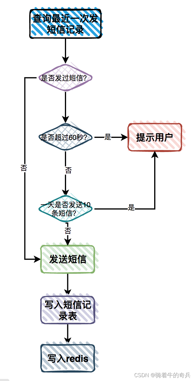 先查询该手机号最近一次发送短信的记录 如果没有发送过,则发送短信。如果该手机号已经发送过短信,但发送时间跟当前时间比超过了60秒,则重新发送一条新的短信。如果发送时间跟当前时间比没超过60秒,则直接提示用户操作太频繁,请稍后重试。这样就能非常有效的防止恶意用户刷短信的行为。
