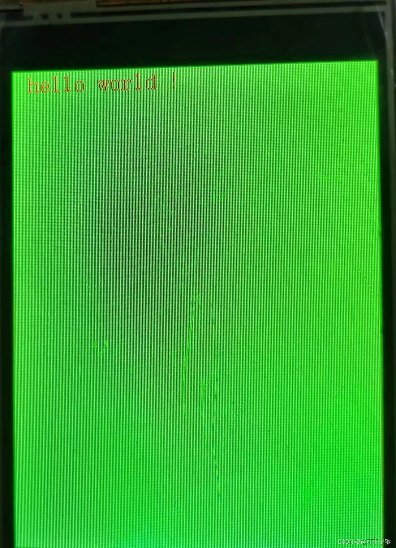 在屏幕上显示"hello world !",字体颜色红色,屏幕背景颜色绿色。