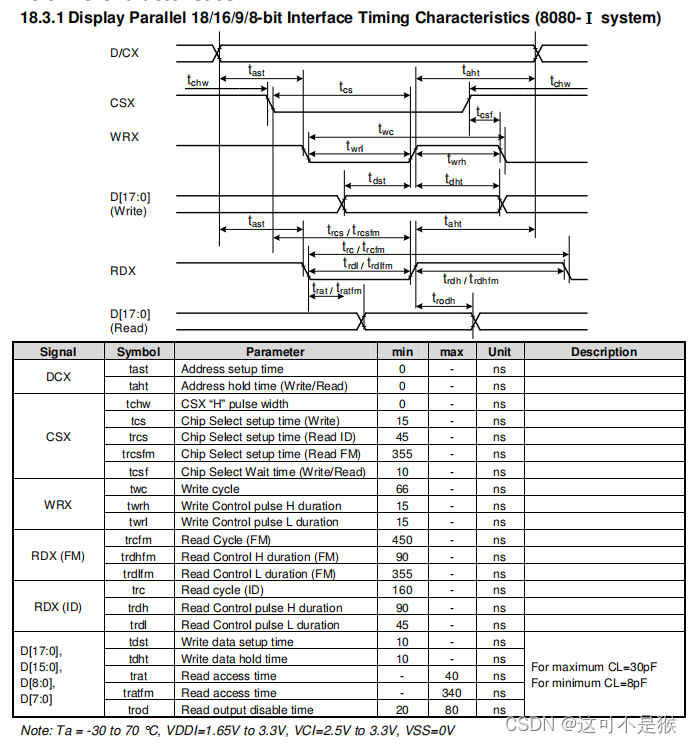 8080-Ⅰ/8080-Ⅱ系列MCU的8/9/16/18位接口。