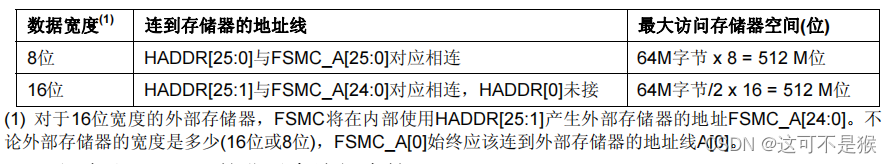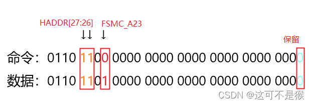 HADDR[27:26]=01表示选择了NOR/PSRAM 2,即起始地址为64000000H