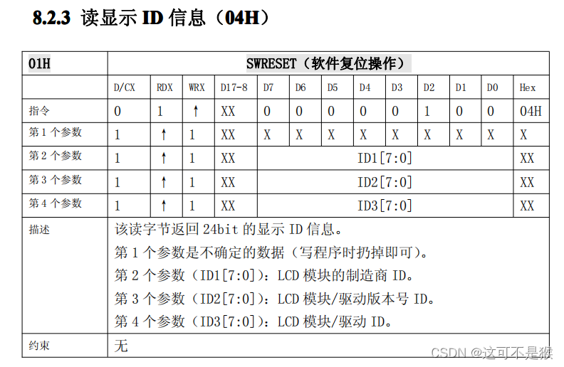 | D/CX | 数据#命令 | A[25:0] | 地址线 |