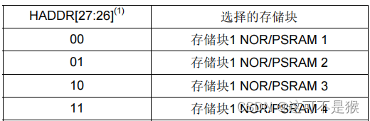 HADDR[27:26]=00表示选择了NOR/PSRAM 1,即起始地址为60000000H