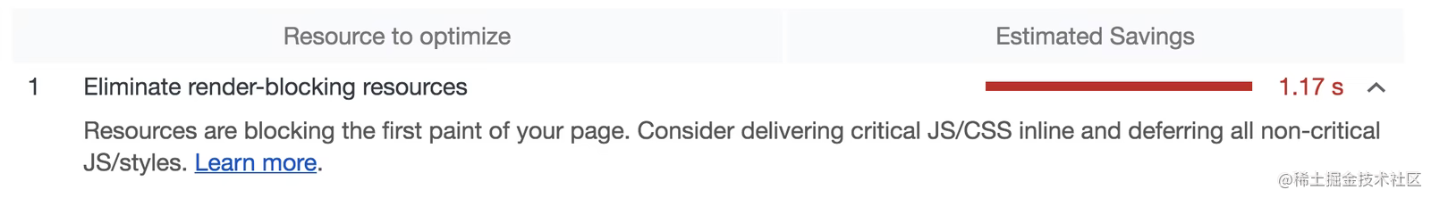 消除阻塞渲染的资源。报告中会列出阻止当前页面首次绘制的所有 URL。通过内联关键资源、推迟非关键资源和删除任何未使用的内容来减少这些阻止渲染的 URL 的影响。