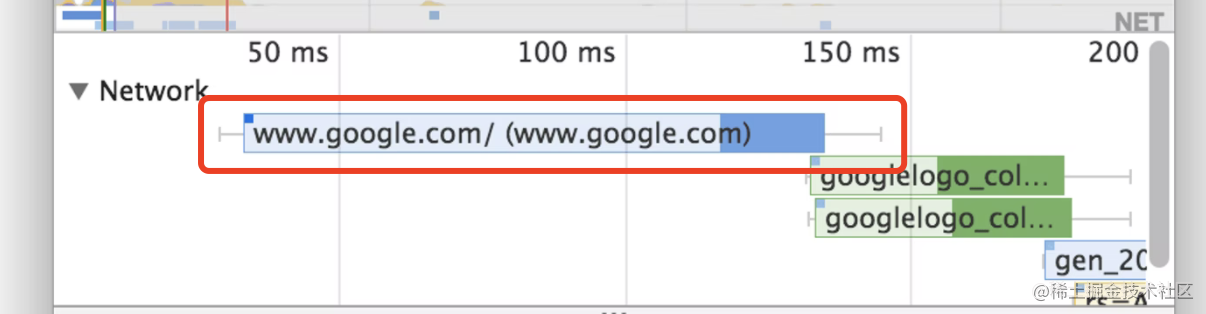 绿色表示首次绘制所需的脚本/样式,即关键资源,红色则为非关键资源。