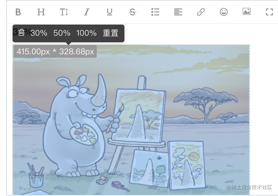 通常的富文本组件在编辑图片时都可以设置图片相对父元素的实际渲染宽度百分比,从而得到添加了 width 属性的 img 字符串。