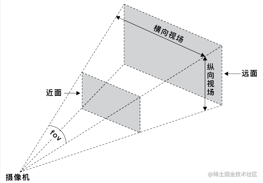 near: 从距离摄像机多近的位置才开始渲染,推荐默认值0.1;