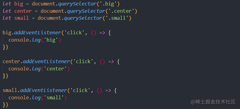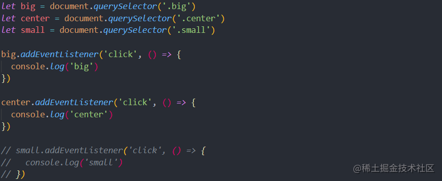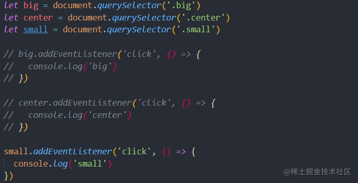 如果子元素(small)的点击事件去掉,当我们点击small的时候会把当前操作的点击事件传递给父元素(因为父元素绑定了点击函数)