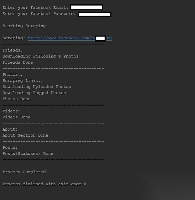 该机器人可抓取 Facebook 用户个人资料的几乎所有内容,包括用户时间轴上可用的所有公共帖子/状态,上传的照片,带标签的照片,视频,朋友列表及其个人资料照片(包括关注者,关注者,工作朋友,大学朋友等) 。