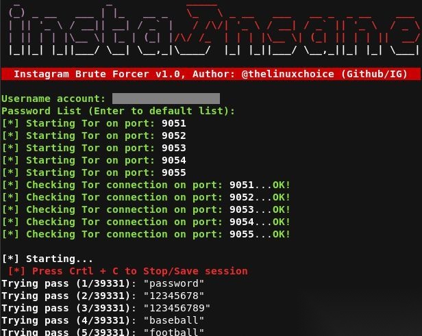 Instainsane 是一个 Shell 脚本,可以对 Instagram 进行多线程蛮力攻击,该脚本可以绕过登录限制,并且可以一次以100次尝试以大约1000个密码/分钟的速度测试无限数量的密码。