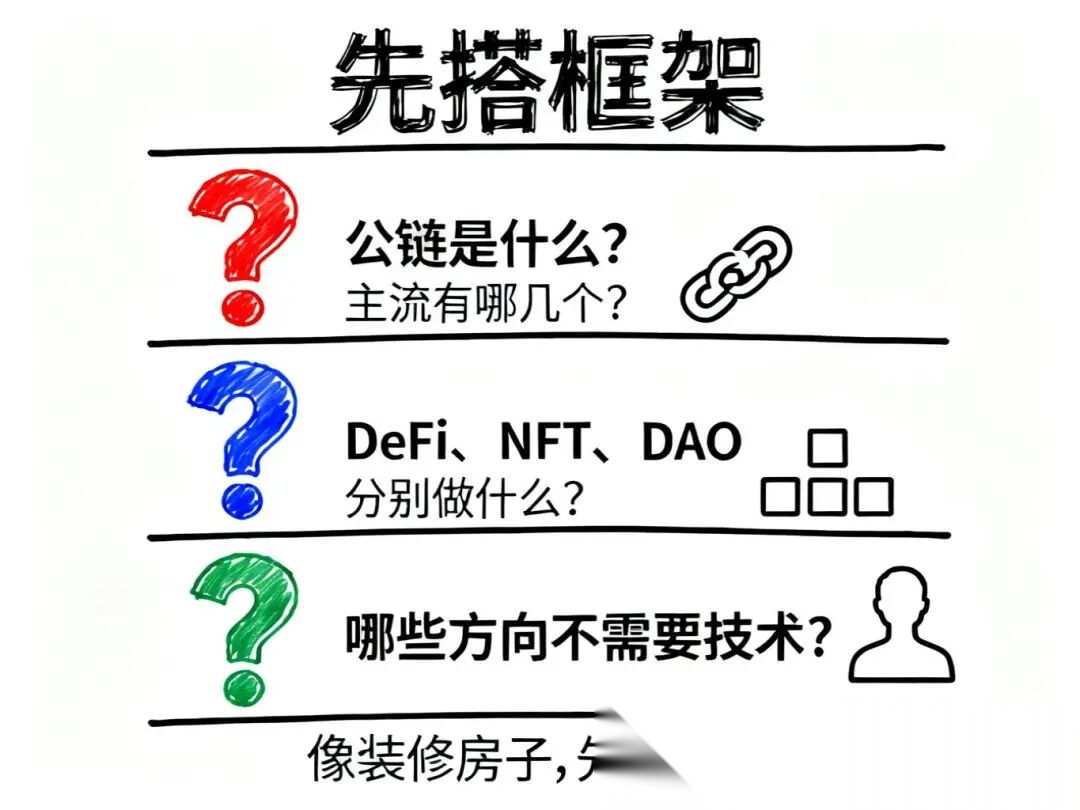 Web3不是技术门槛,是认知门槛。先搭框架,再填细节,比一头扎进去高效10倍。