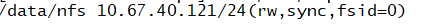 /data/nfs 10.67.40.121/24(rw,sync,fsid=0)