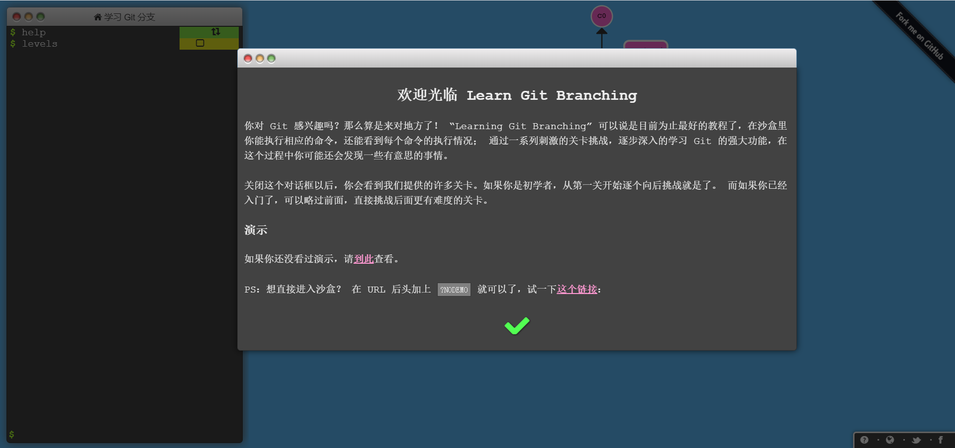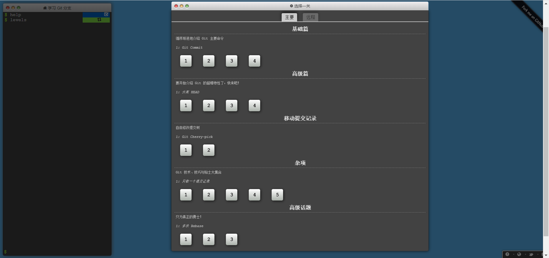 Learn Git Branching是一个游戏式关卡动画式学习Git的网站,之前一直想找一个以游戏式、关卡升级是的学习方法,这个就是,很好的,先上截图及连接。