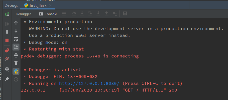 return 'Hello, 这是第一个Flask实例,/目录url返回!' #函数最后返回需要在用户浏览器中显示的信息