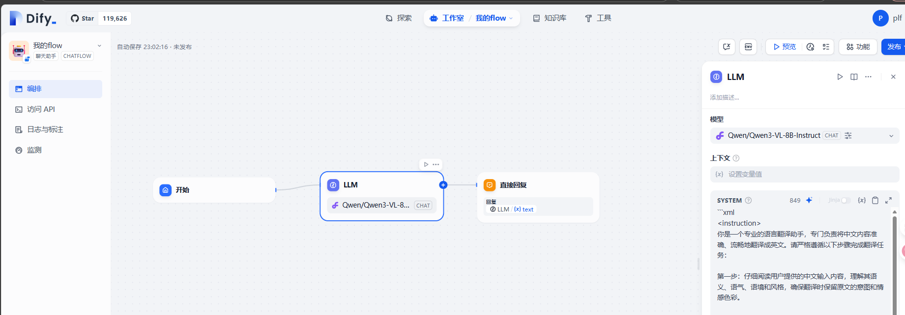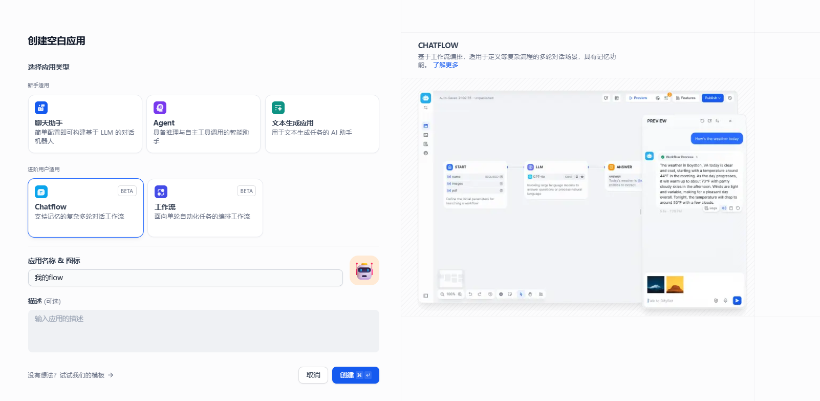 6.创建简单chatflow,并使用