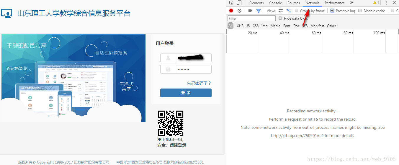首先,找到山东理工大学教务系统登录的首页,打开浏览器的开发者工具(f12)来查看学校是通过什么方法来验证我们的登录账号密码。
