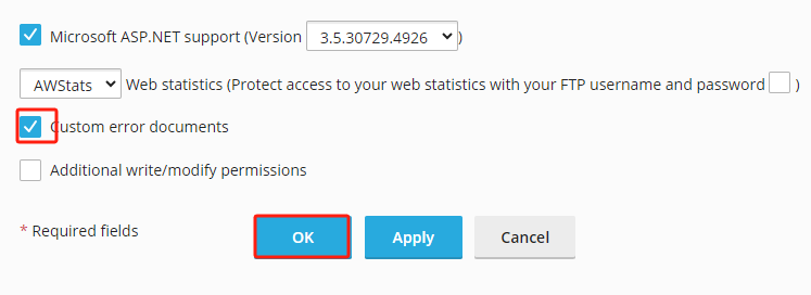 在接下来的页面中勾选“自定义错误文件”,然后保存