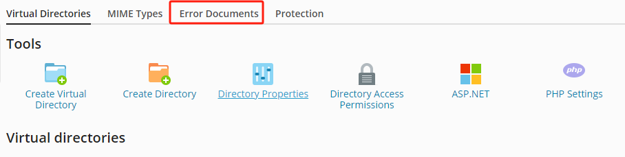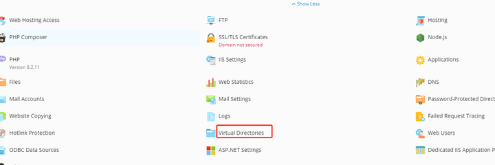 保存后回到Plesk面板的首页,找到“虚拟目录”功能