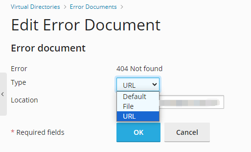 .然后在“位置”后面的方框中输入你要使用的404错误页面URL,“确定“即可。