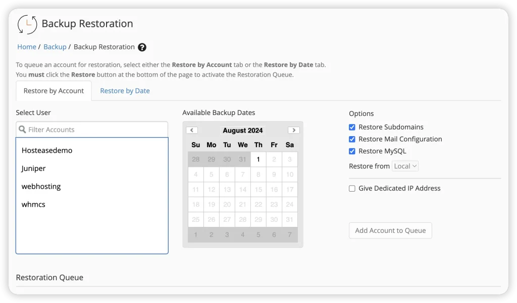 UI已整合到一个页面,并且更易于使用。恢复操作通过一个方便的日历来选择和完成,简化了流程。对于使用Hostease服务器的用户来说,这一改进将进一步提升备份恢复的便捷性和效率。