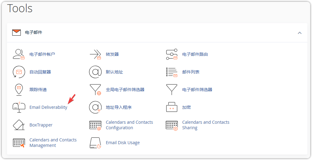 在使用虚拟主机(cPanel)服务时,您可以通过cPanel来管理SPF和DKIM记录,以确保您的邮件身份验证正确配置。以下是在cPanel中找到SPF和DKIM记录的步骤:
