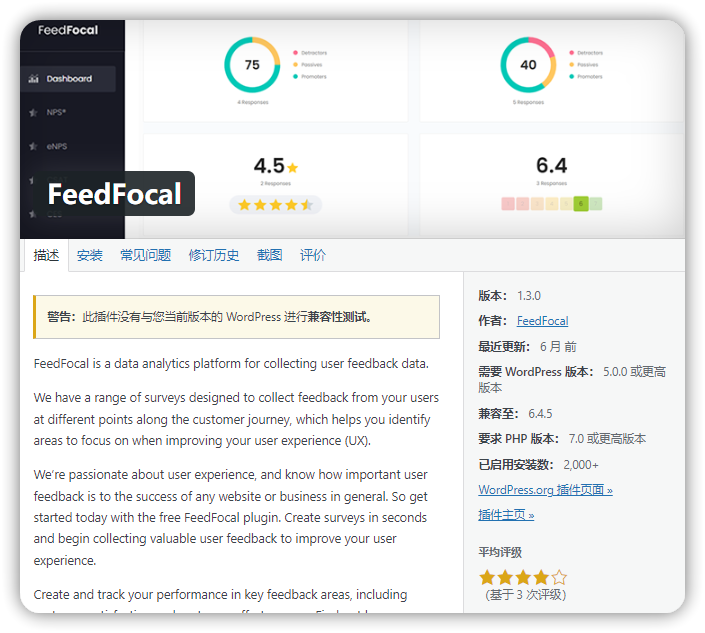 FeedFocal 是一款简单易用的反馈插件,提供了多种预设模板,让你可以快速创建满意度调查、净推荐值(NPS)调查等表单。它界面简洁,操作方便,非常适合那些需要快速获取基础反馈的小型网站。虽然免费版有反馈数量的限制,但对于小规模的网站或个人站长来说,已经足够实用。