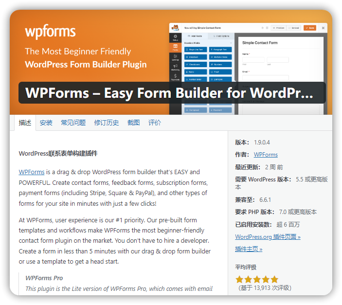 WPForms 是一款非常流行的表单插件,支持创建多种形式的用户反馈表单。你可以通过简单的拖拽操作,轻松定制反馈表单,无需编写代码。WPForms还提供超过1700个预设模板,且支持智能条件逻辑,可以根据用户的选择动态调整问题,让反馈过程更加顺畅。