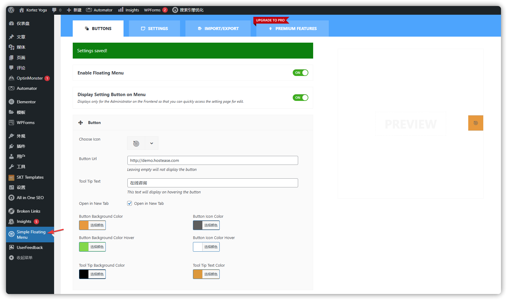 Simple Floating Menu 是一个轻量级的 WordPress 插件,能够为你的网站添加一个浮动按钮,用户可以通过点击按钮跳转到预设的联系表单页面。该插件简单易用,特别适合不想深入自定义的用户,或者那些希望快速部署联系表单的站点。