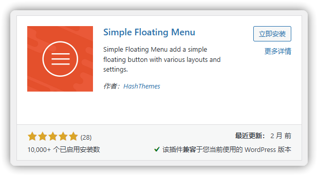 在搜索框中输入“Simple Floating Menu”,点击“安装”并激活插件。