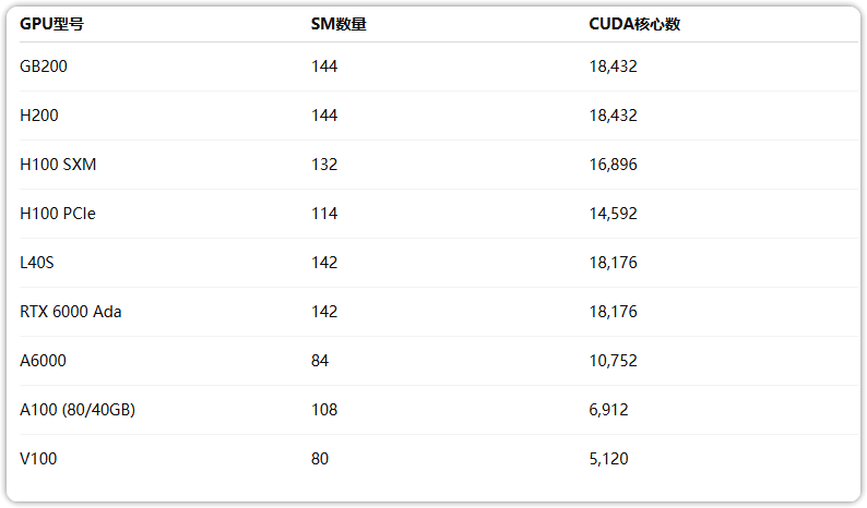 不同型号的NVIDIA GPU,CUDA核心数量各不相同,直接影响并行计算能力: