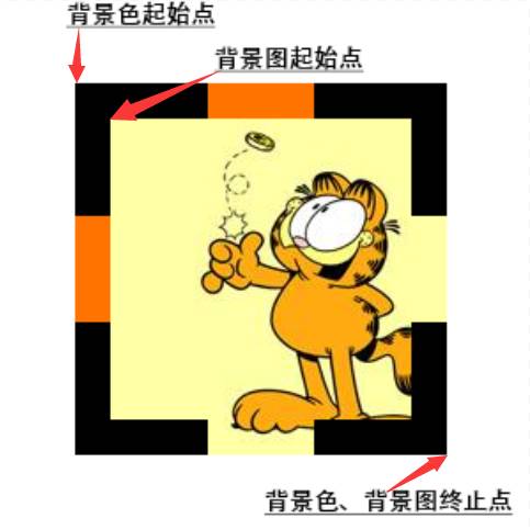 但有一点需要注意,background-color 是从元素的边框左上角起到右下角止,而 background-image 却不一样,他是从 padding 边缘的左上角起而到 border 的右下角边缘止。