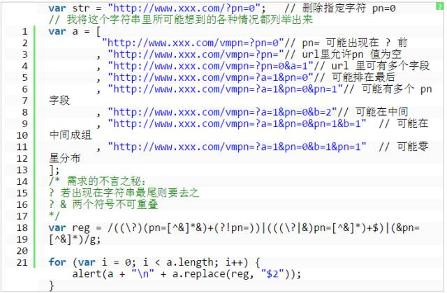 细节决定成败,优秀的方案并不能保证最终的成功。还以”删除指定字符串”为例,原始字符串从格式上来看应该是了个 url 链接,在去除”pn=0″之后,最末尾处留了一个尾巴”?”;如果原始字符串是”http://www.xxx.com/?pn=0&a=1“,去除”pn=0″之后 ? 和 & 两个符号紧贴一起,这更是明显的 bug。