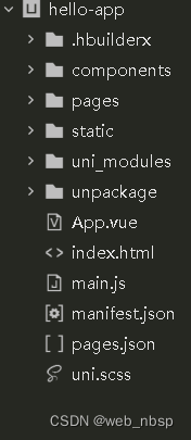 pages.json 文件用来对 uni-app 进行全局配置,决定页面文件的路径、窗口样式、原生的导航栏、底部的原生tabbar 等