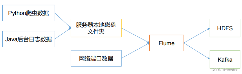Flume最主要的作用就是,实时读取服务器本地磁盘的数据,将数据写入到HDFS(只能识别文本文件)