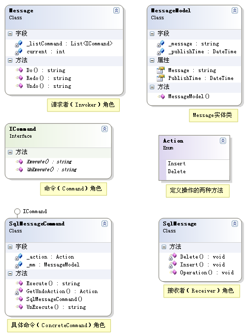 有一个Message实体类,某个类对它的操作有Insert()和Delete()方法。现在要求可以对之前的所有操作做撤销和重复。