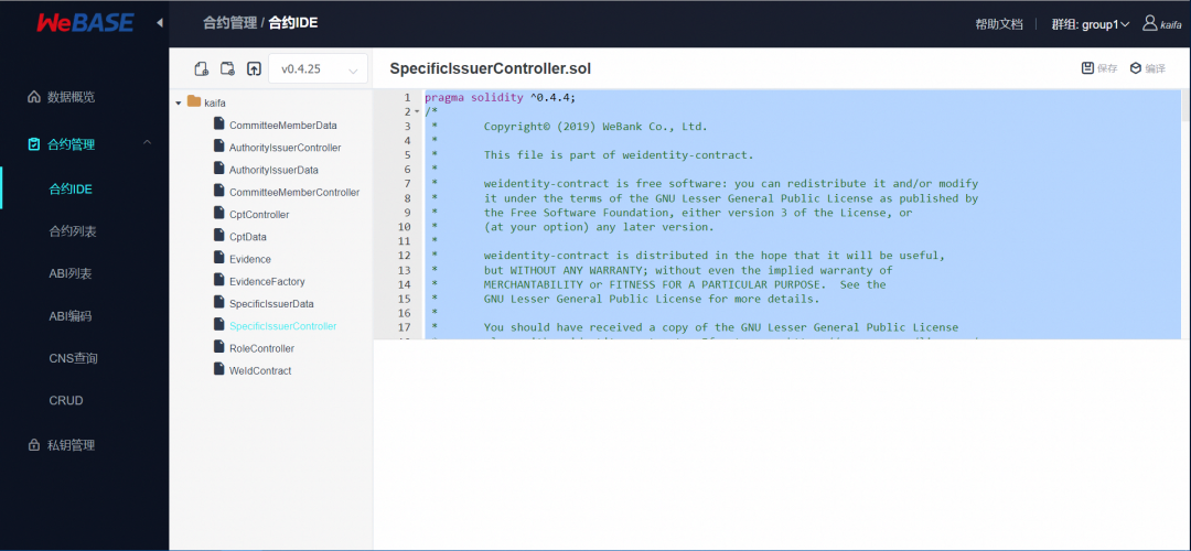 WeBASE v1.4.1新增了合约管理权限功能,支持开发的合约只对开发者可见。这解决了在多名开发者共用一套区块链环境的情况下,开发者创建的合约被其他开发者查看和编辑的问题。