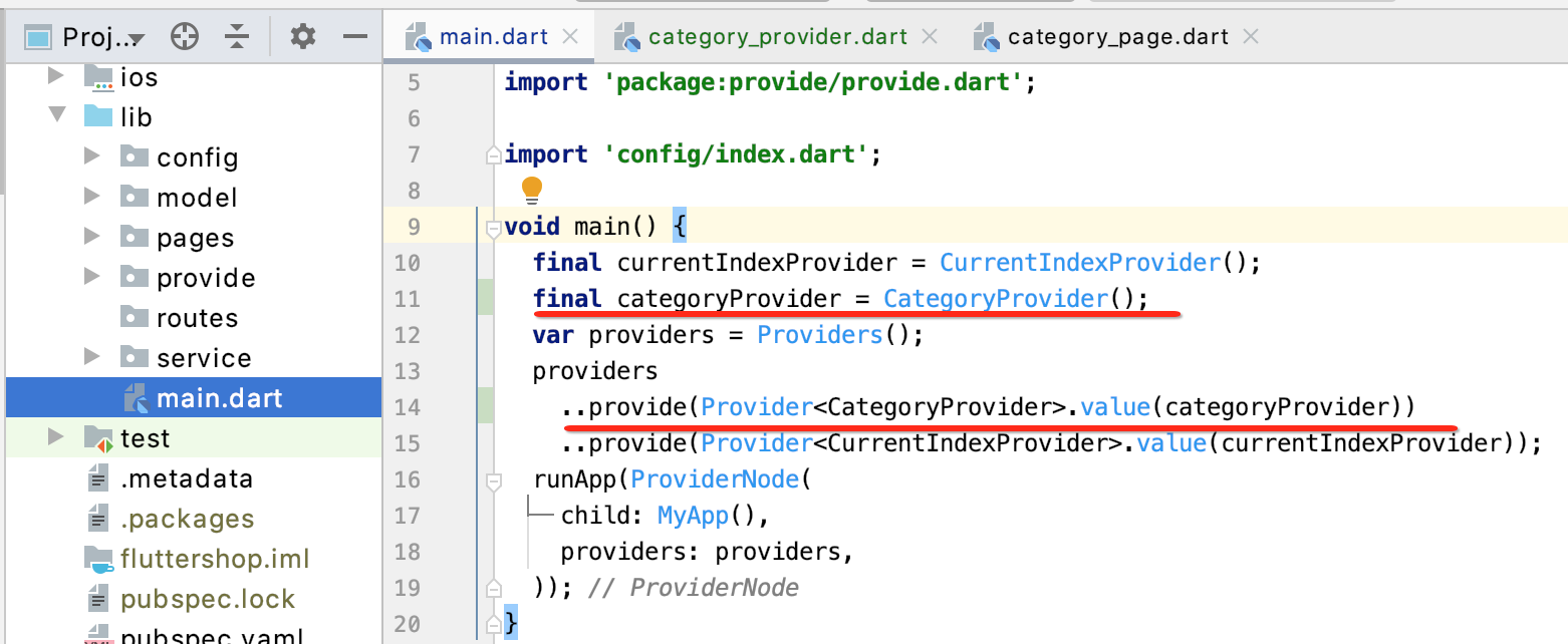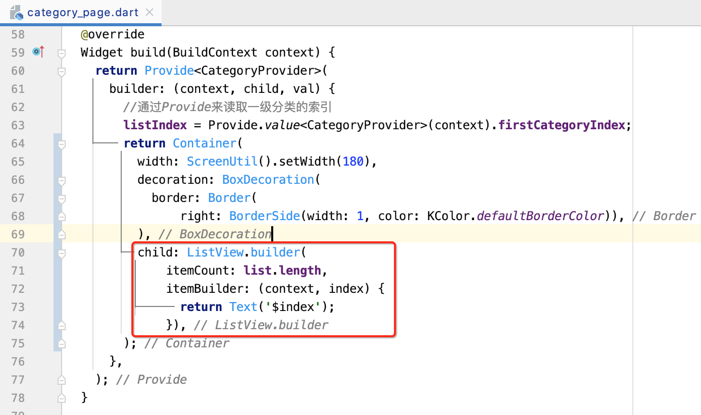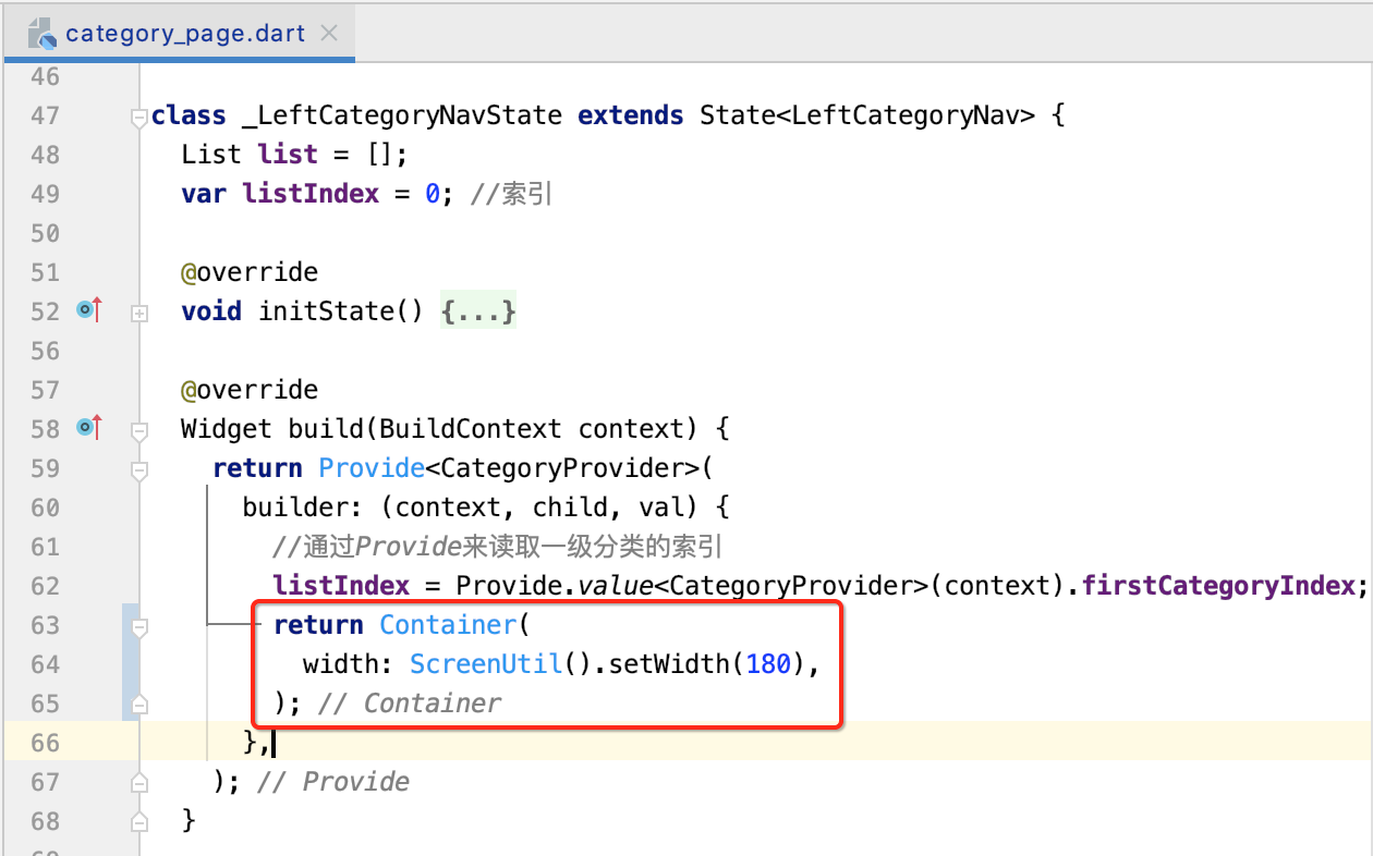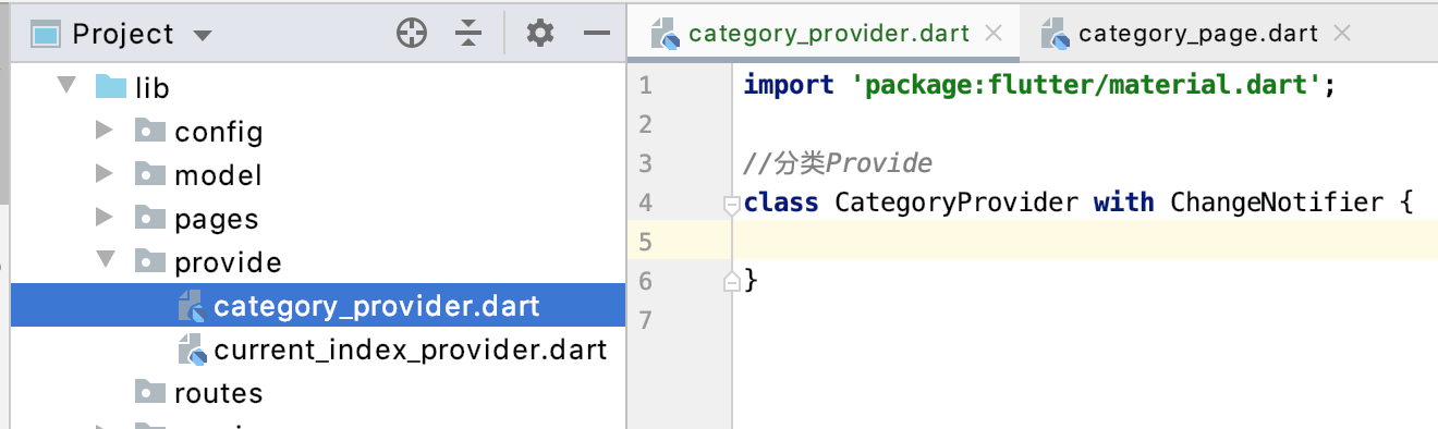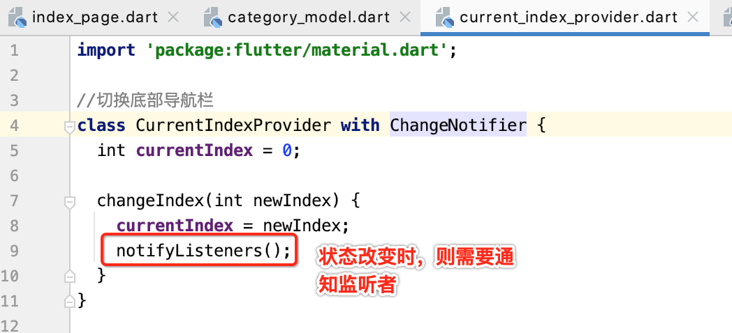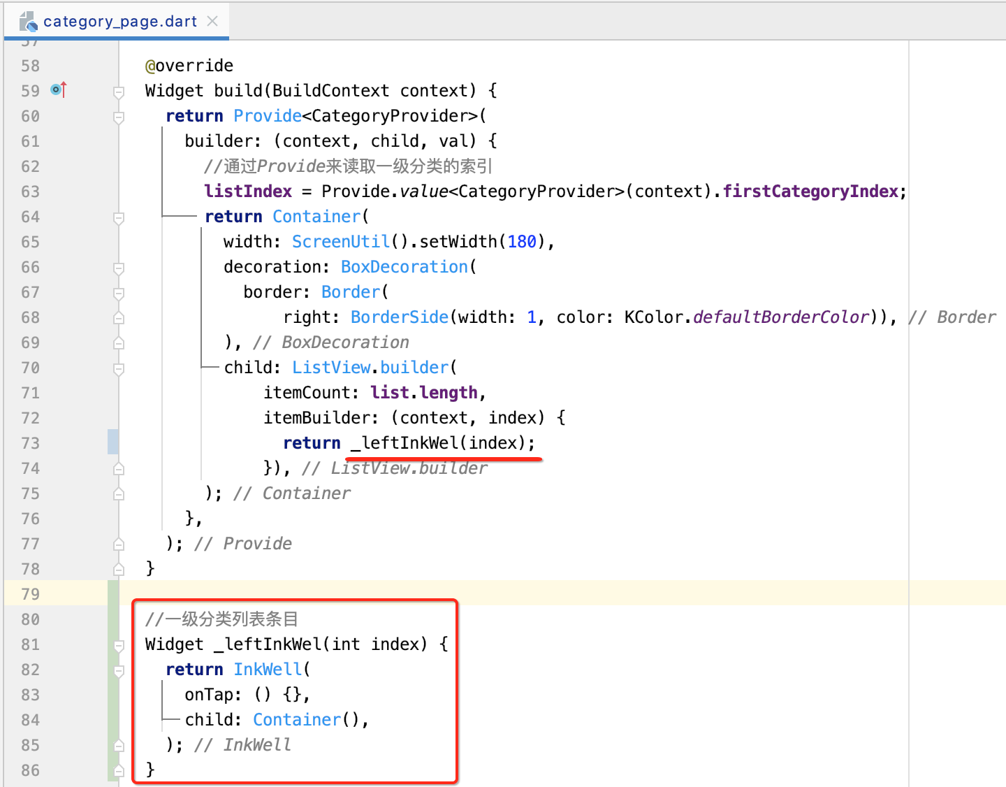 此时只改变了分类的索引,还没有进行Tab的切换,所以还需要做一步处理,关于Tab的切换还有印象么,也是调用跟Tab状态切换的Provide,如下: