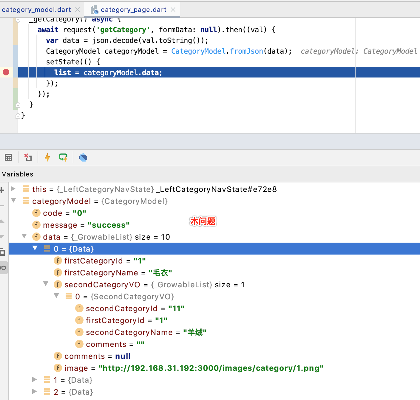 其中有个报错就是需要获取二级分类的数据,此时就只能进行接口请求查询了,所以很显然是一个异步的,具体如下:
