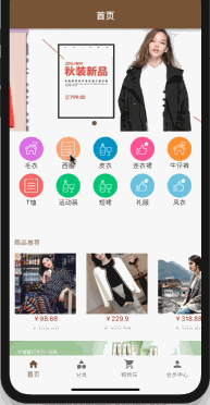 在继续编写分类页面的逻辑之前,先来处理一个首页分类导航的问题,对于首页不是有这么一个区域么?