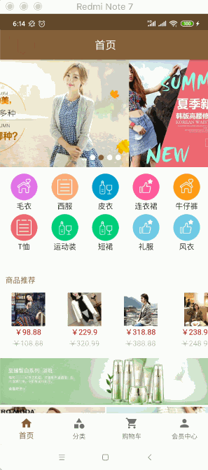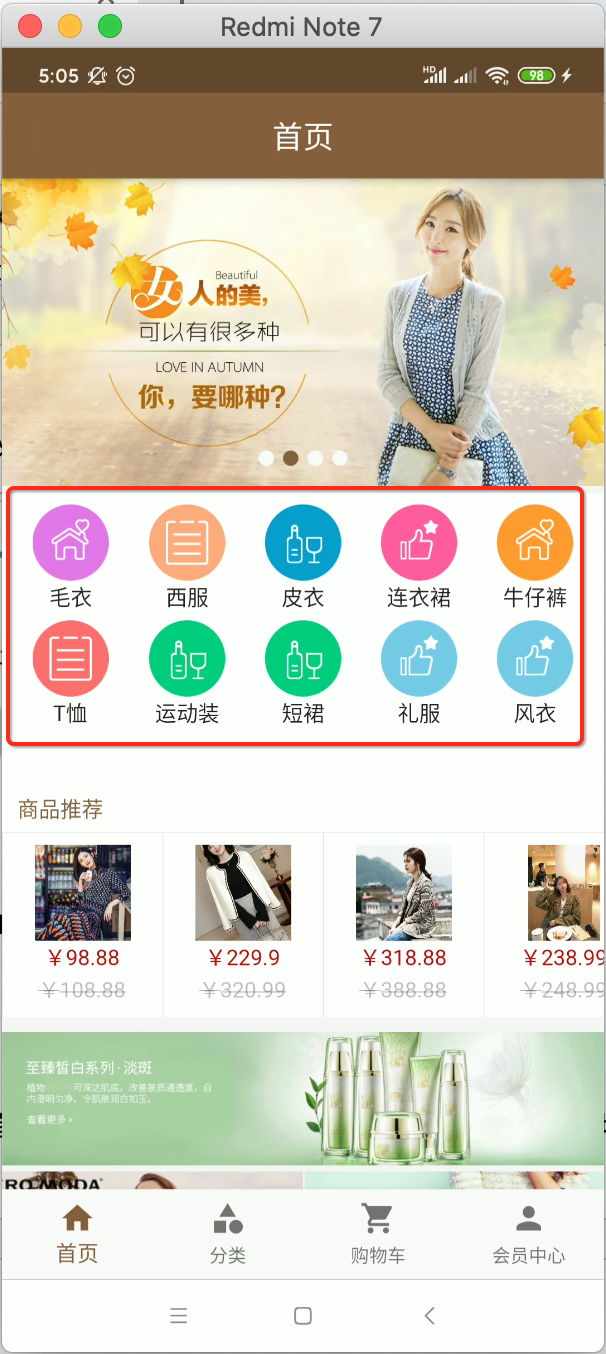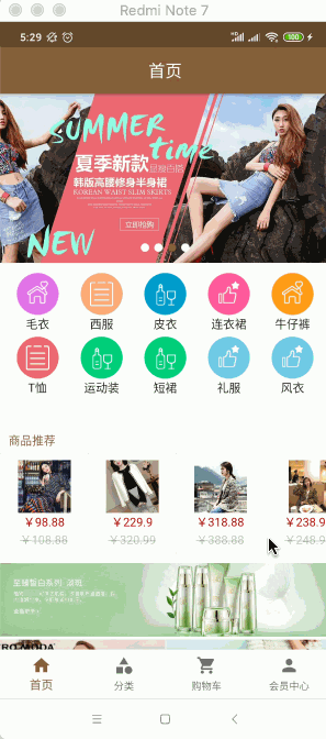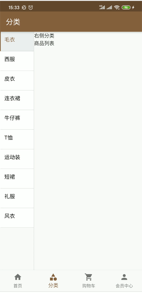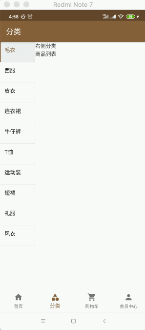 继续接着上一次Flutter项目实战之女装商城------火爆专区实现、商品分类数据准备的Flutter项目往下学习,在上一次是开始对分类界面的数据已经准备好了,整体APP的样子回忆一下: