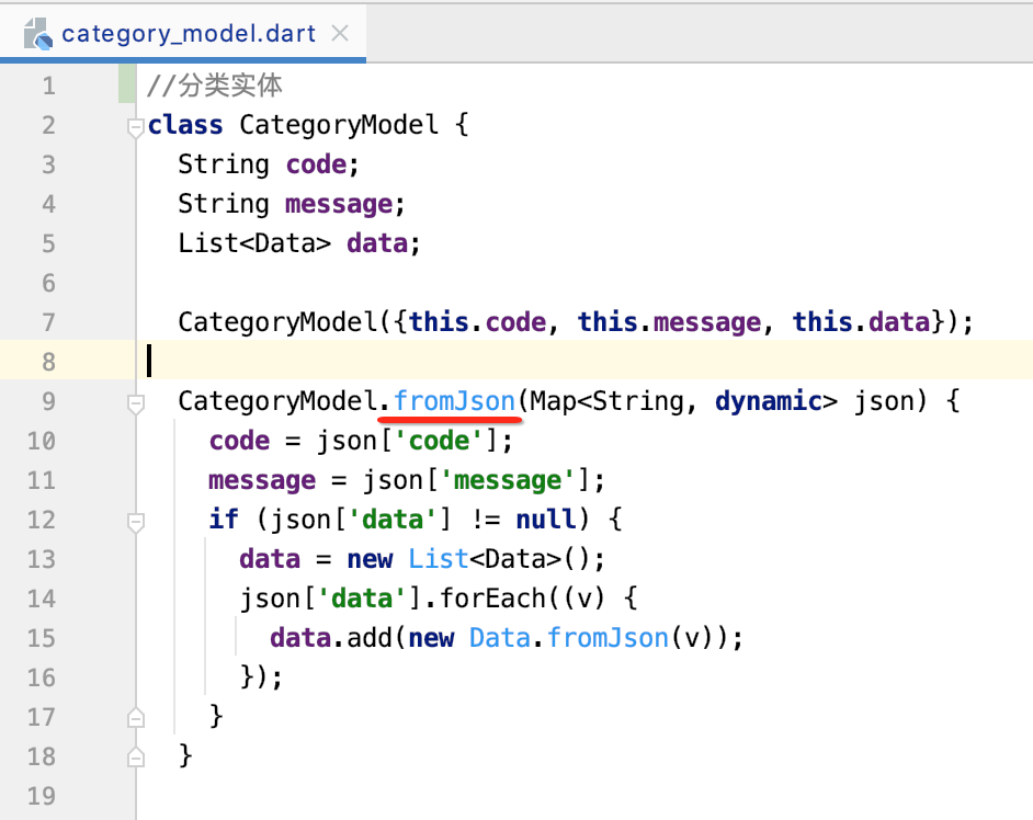 首先得要先根据接口的JSON数据来定义咱们的VO实体模型,先将分类的JSON结构贴出来: